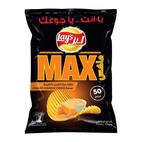 buy lays max creamy cheddar chesse flavor potato chips 50 g online shop food cupboard on carrefour saudi arabia